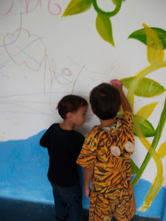Hjemme på besøk i Lad Prao så var vi og skjekket ut nye huset. Chalom og Thanan var spesielt fornøyd med kjøkkengulvet, hvor flisene var laget etter tegninger som de hadde tegnet.